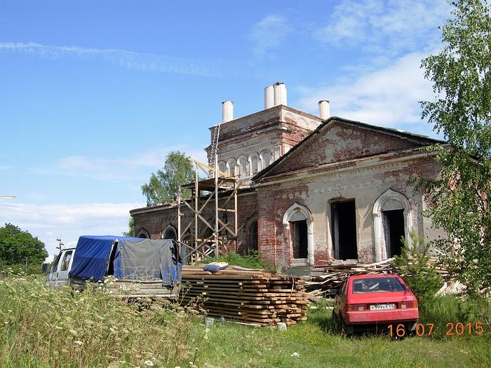 Надежда эта – не просто слова. Сейчас в Бродах уже зарегистрирован официальный приход Русской Православной Церкви, который возглавляет правнучка отца Алексия Поведского Наталья. Проводятся субботники по очистке территории храма. Освобождена от вездесущих березок и восстановлена кровля, на четверике уже установлены барабаны под купола. Ну, а летом 2014 года произошло событие, после которого даже сельские маловеры поняли, что храм будет возрожден. В наиболее сохранившемся приделе мучеников Флора и Лавра с помощью благотворителей был сооружен алтарь. И в Ильин день окормляющий приход священник Роман Ожерельев отслужил Литургию. Первую за 80 минувших лет!