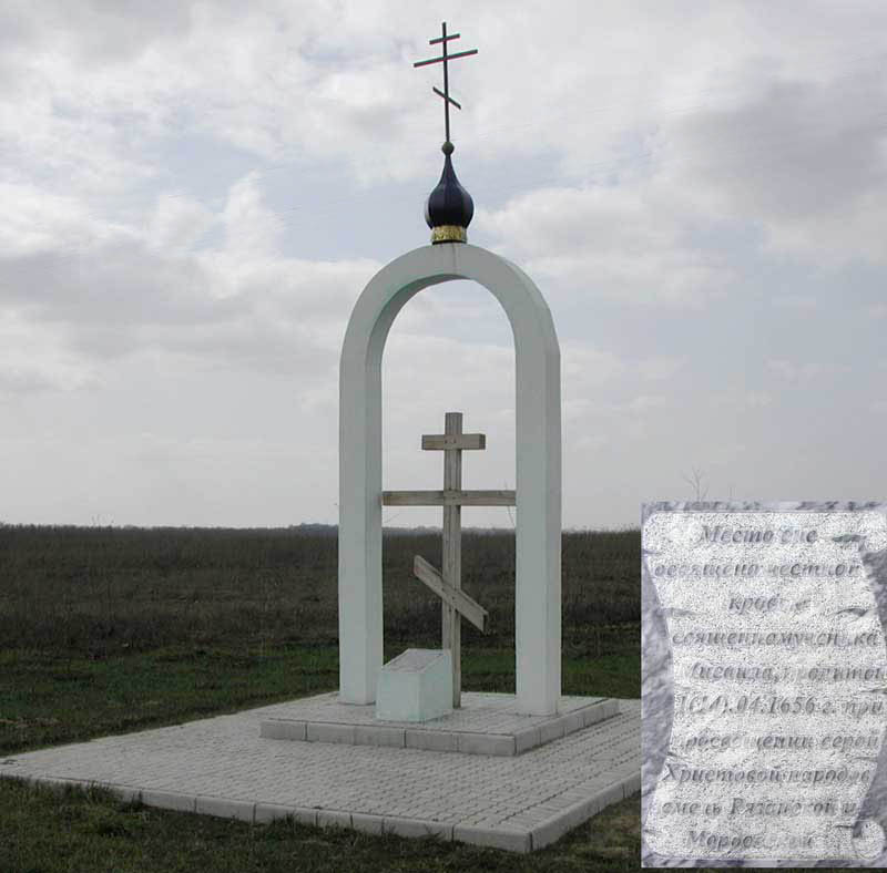 Памятник на месте гибели сщмч. Мисаила. «Место сие освящено кровью священномученика Мисаила, пролитой 1/14.04.1656 г. при просвещении верой Христовой народов земель Рязанской и Мордовской