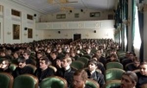 В актовом зале присутствовали председатель Учебного комитета Русской Православной Церкви, ректор Московских духовных академии и семинарии архиепископ Верейский Евгений, представители профессорско-преподавательской корпорации, учащиеся духовной школы.
