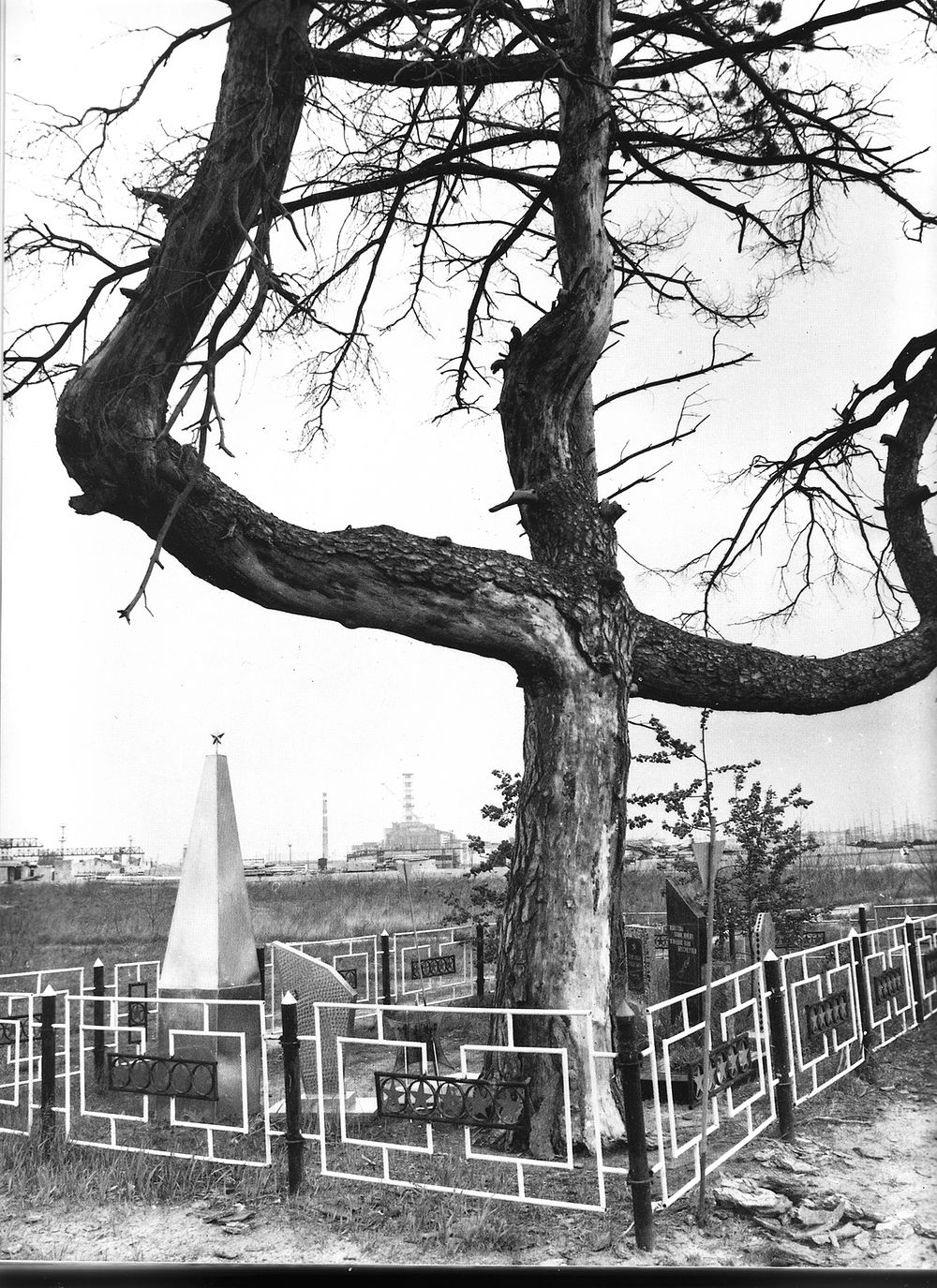 Над иконой работал иконописец Владислав Горецкий, мастер высокого класса. Образ исполнен тонко и выразительно. В центре ее мы видим летящую с неба «звезду полынь» над зловещим заревом взрыва и сосну в виде креста-распятия. Этот феноменальный знак грядущей трагедии рука Господня воздвигла на полесской земле за десятилетия до аварии: уже во время Великой Отечественной войны это было большое, взрослое дерево. И вышло так, что станция была построена буквально в двух километрах от этого огромного живого креста, выросшего на опушке. Когда зараженный радиацией «рыжий лес» ликвидировали и пространство очистилось, открылась ошеломляющая картина, сродни духовному видению: два символа вселенской катастрофы, соединенные в одной плоскости, – взорвавшийся четвертый реактор на фоне дерева-креста.