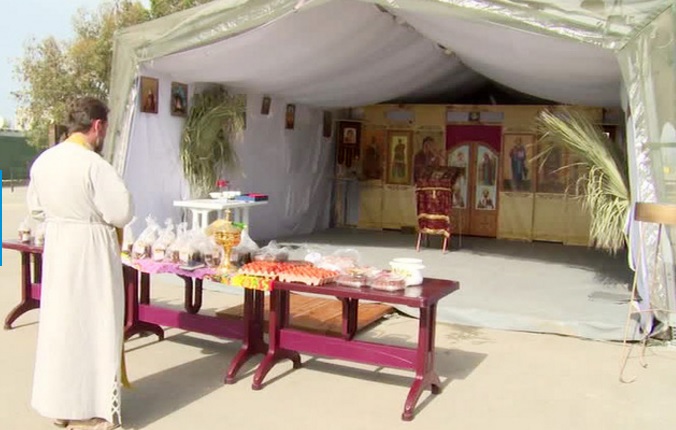 Также в полевом храме прошла церемония освящения доставленных из России к Пасхе куличей, пасхальных яиц и другого праздничного угощения для российских военнослужащих, выполняющих специальные задачи на территории Сирии, передает ТАСС.