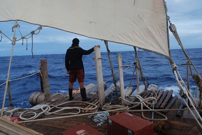 Плавание же на историческом судне, таком, как бальсовый плот конструкции древней цивилизации инков, – это не просто риск, но в большей степени попытка найти – или наметить хотя бы – ответы на самые поверхностные вопросы. Их ставит перед нами как будто бы современная наука, а на самом деле наши предки задают загадки: «Угадайте со всеми вашими суперкомпьютерами и развитой технологией, как мы ходили на столь примитивных плотах по Тихому океану по островам и до континента? Вы летаете в космос, стремитесь к другим планетам, но не можете пройти каких-то 2000 миль по родному океану в определенном направлении!»
