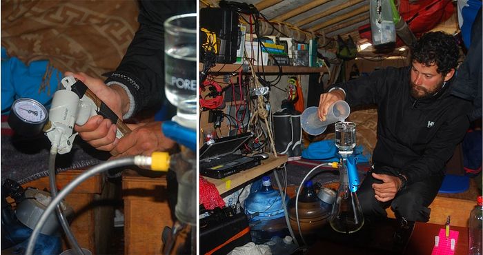 Когда светило чистое яркое солнце, то по программе NASA измерялись величины падающей на поверхность океана лучистой энергии. По утрам специальной сеткой надо было собирать планктон, поднимающийся к поверхности океана после ночи. Также нужно было фильтровать морскую воду на особых фильтрах, собирая на них этот планктон, потом пробы эти аккуратно упрятывались в пробирки – их надо было привезти в научные лаборатории в Норвегию для детального анализа. И круглосуточно, постоянно жужжала водяная помпа, перегоняя морскую воду для измерения основных ее параметров: солености, температуры, содержания кислорода и углерода, флуоресценции и других.