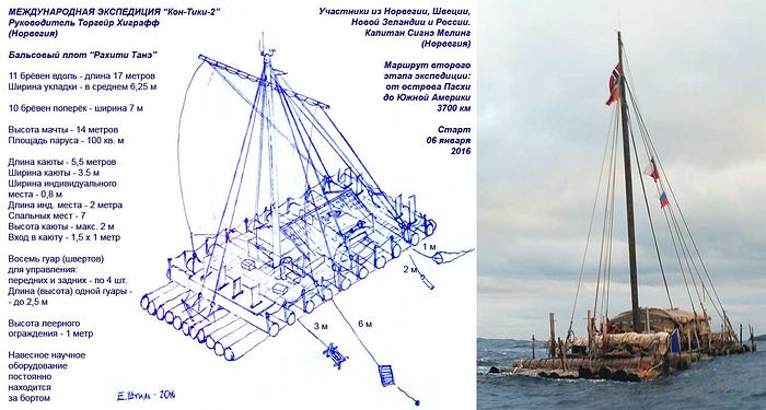 В истории современного мореплавания попытки пройти океан на плотах стоят особо: и из-за своей малочисленности, и из-за особенной трудности. Первым таким плаванием стала экспедиция выдающегося норвежского ученого, путешественника Тура Хейердала в 1947 году, когда с командой из шести человек он провел удивительную экспедицию на плоту «Кон-Тики» от берегов Перу (Кальяо) до атолла Рароиа. За 101 день смельчаки прошли по Тихому океану расстояние вдвое большее, чем то, на которое «отважился» Колумб, когда шел «открывать» Америку. Заданный Хейердалом и его соратниками импульс оказался такой силы, что до сих пор собирает таких же романтиков с мечтой отправиться в новое плавание на деревянных плотах. Потому не удивительно, что в конце 2015 – начале 2016 года состоялась новая экспедиция – «Кон-Тики–2»: на тихоокеанские просторы вышли два одинаковых плота из бальсы, которые прошли на первом этапе от Кальяо до острова Пасхи, а затем хотели вернуться своим ходом вновь на континент. И если первая задача: 2000 миль в западном направлении – была успешно выполнена, и за 43 дня плоты пришли на остров Пасхи, то обратный маршрут оказался поистине «крепким орешком»: Тихий океан показал, что просто так столь сложные мореплавания не даются.
