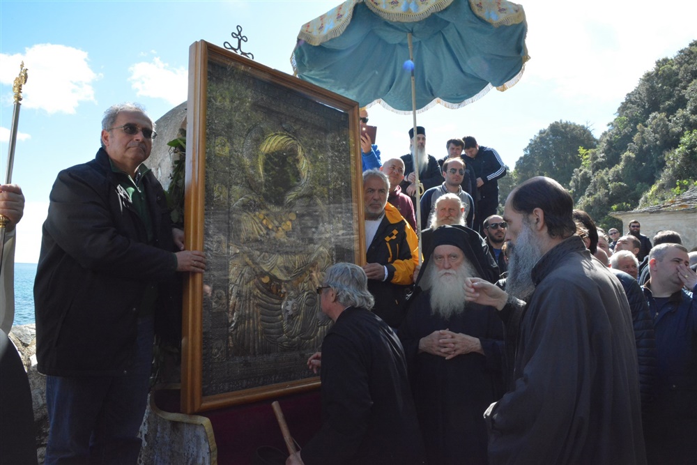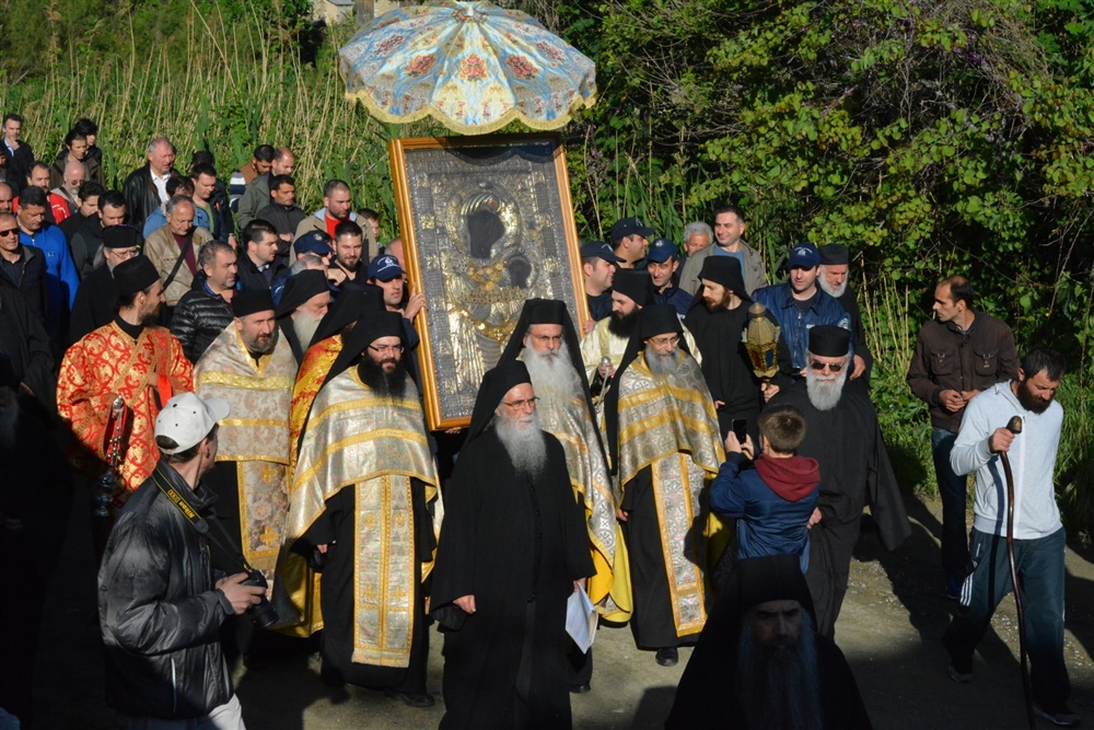 После утрени в обители начинается крестный ход, который сначала направляется к храму, где в древности старец Гавриил (родом из Иверии) увидел свет с моря от иконы, и далее обходит монастырь, направляясь к месту обретения образа на море.