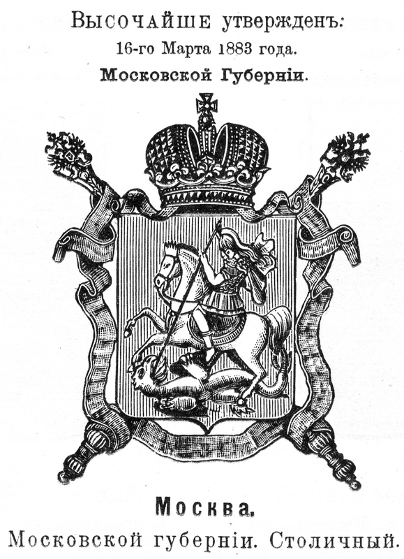 Таким образом, как будто получается, что изображение святого Георгия в качестве эмблемы первопрестольной столицы Российского государства вошло в Государственный герб Российской империи раньше формального утверждения городского герба Москвы: последний был высочайше утвержден императрицей Екатериной II лишь в 1781 году, представляя собою, по официальному описанию, «Святого Георгия на коне против того ж, как в средине Государственного герба, в красном поле, поражающего копием черного змия», и использовался в таком виде в самых разных случаях: к примеру, карабинеры существовавшего при Екатерине «Московского легиона» носили на шапках медный налобный знак с изображением святого Георгия.