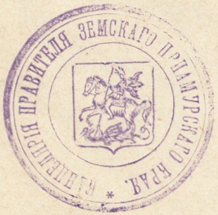 Наиболее известным является изображение святого Георгия на учрежденной 16 августа 1922 года медали в память о деятельности Приамурского Земского Собора, который и принял решение передать, впредь до восстановления монархии, власть генералу Дитерихсу; известно и изображение святого Георгия в полном смысле слова геральдическое, на гербовом щите, — по оттискам печатей канцелярии Правителя и уполномоченных Временного Приамурского правительства. Поэтому не выглядит слишком большой натяжкой предположение, что государственным гербом «Приамурского земского края» являлось чудо Георгия о змие — герб заведомо не входившей в его состав Москвы — в ситуации, когда, кроме чуда, надеяться было уже не на что.