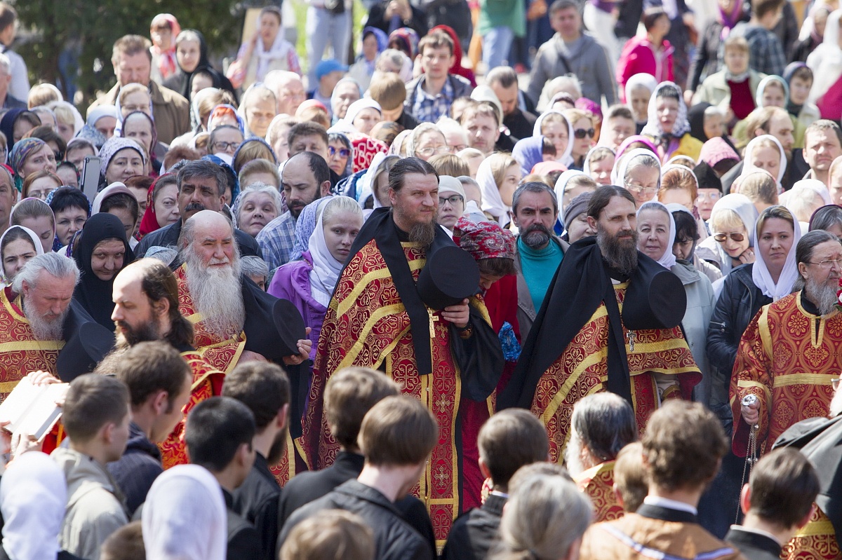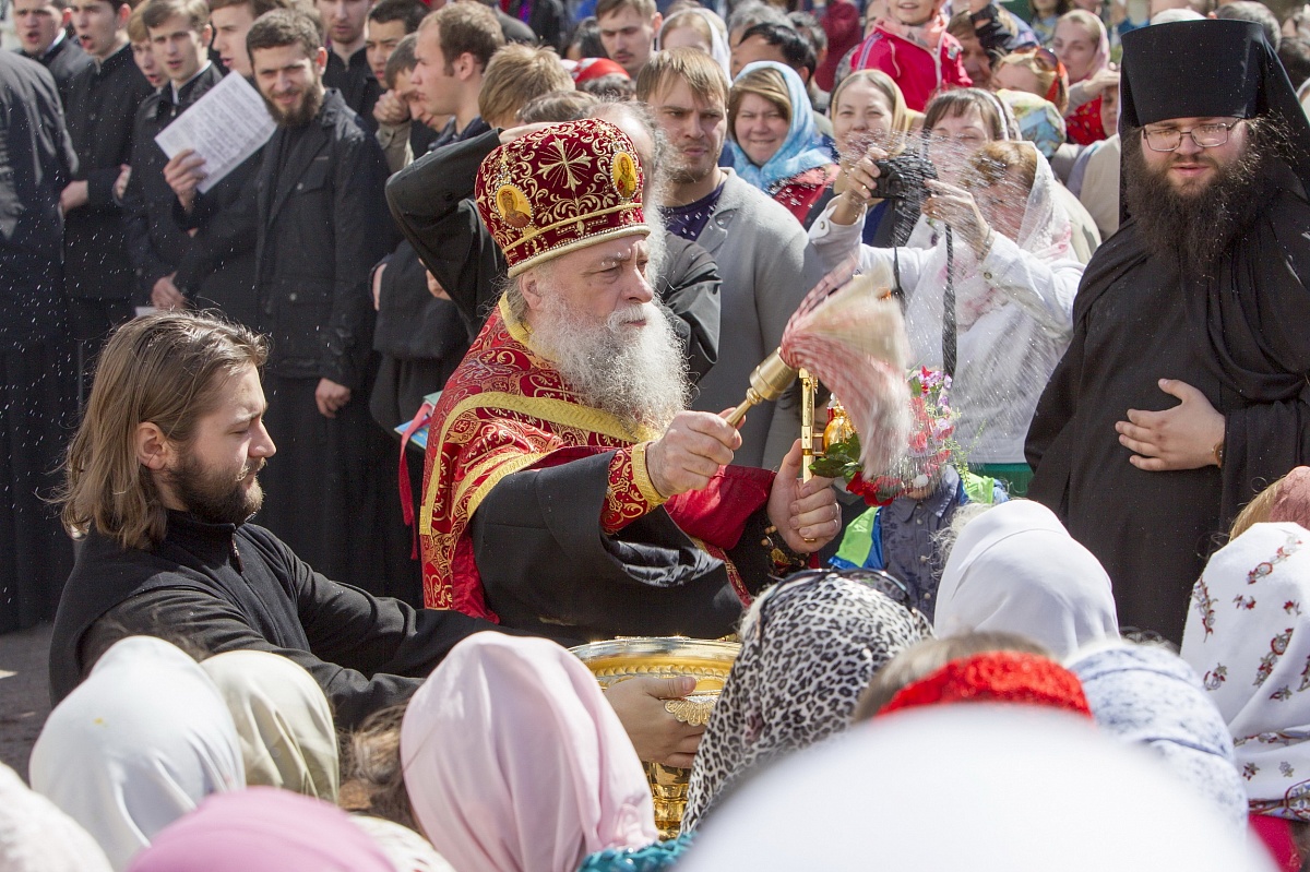 По окончании Литургии на Соборной площади Лавры был отслужен молебен с водосвятием и совершен торжественный пасхальный крестный ход.