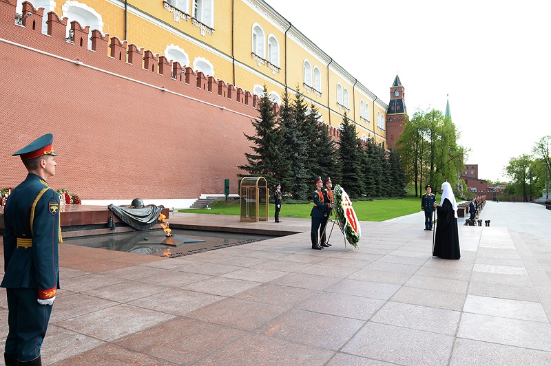 7 мая 2016 года, в преддверии празднования 71-й годовщины Победы в Великой Отечественной войне, Святейший Патриарх Московский и всея Руси Кирилл возложил венок к могиле Неизвестного солдата в Александровском саду у Кремлевской стены, сообщает Патриархия.ru.