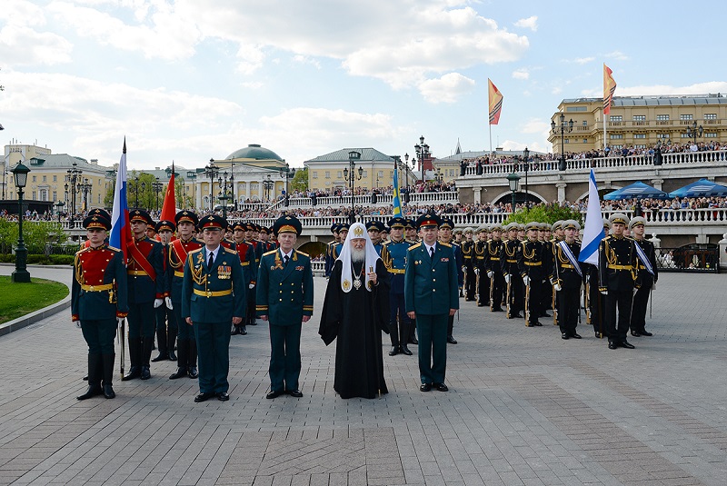 Святейший Патриарх Кирилл поздравил с Днем Победы военного коменданта г. Москвы генерал-майора Е.А. Селезенева, офицеров и солдат отдельного комендантского Преображенского полка: