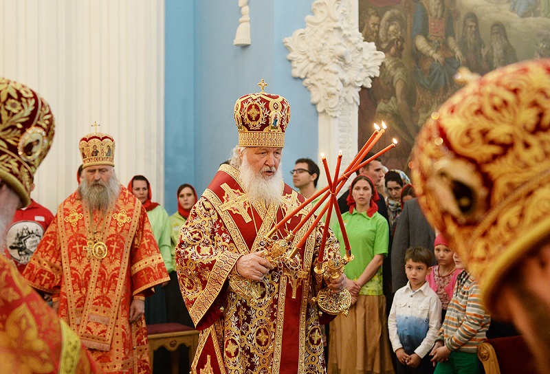 После сугубой ектении Предстоятель Русской Православной Церкви вознес молитву о мире на Украине.