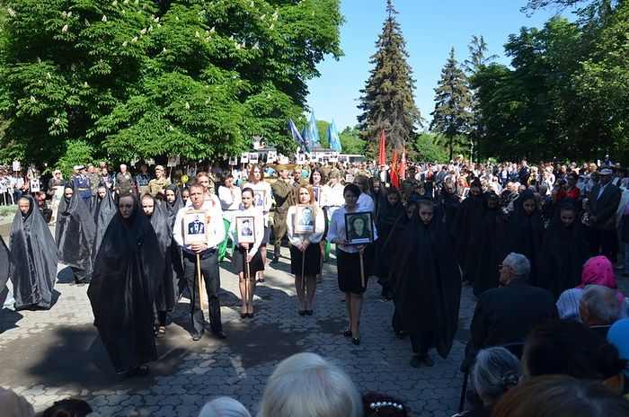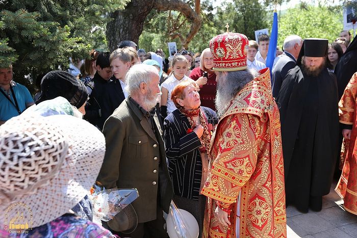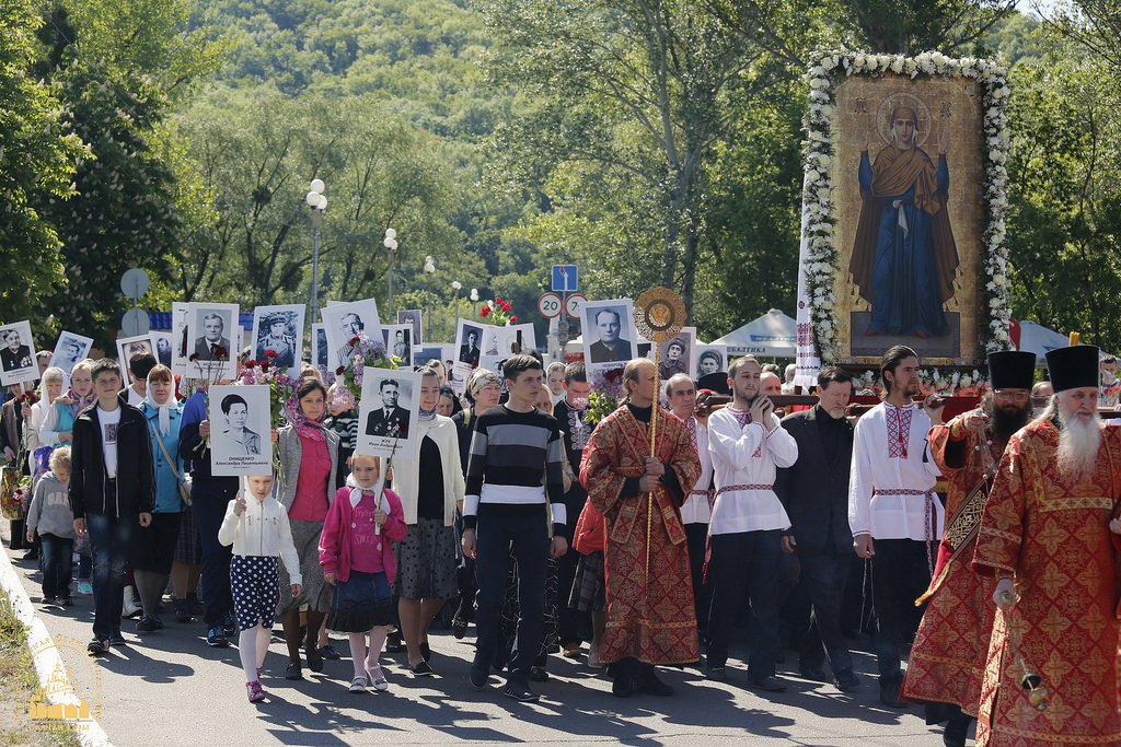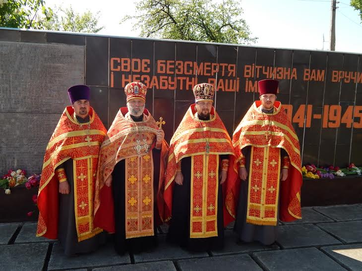 В День Победы в храмах Донбасса за Божественной литургией возносилась молитва по погибшим в Великой Отечественной войне и о мире на нашей земле. В Богоявленском кафедральном соборе Горловки Божественную литургию совершил митрополит Горловский и Славянский Митрофан в сослужении духовенства города. После литургии духовенство и горожане прошли крестным ходом до парка Славы. Здесь у часовни мученика Виктора митрополит Митрофан возглавил панихиду по всем погибшим в Великой Отечественной войне.