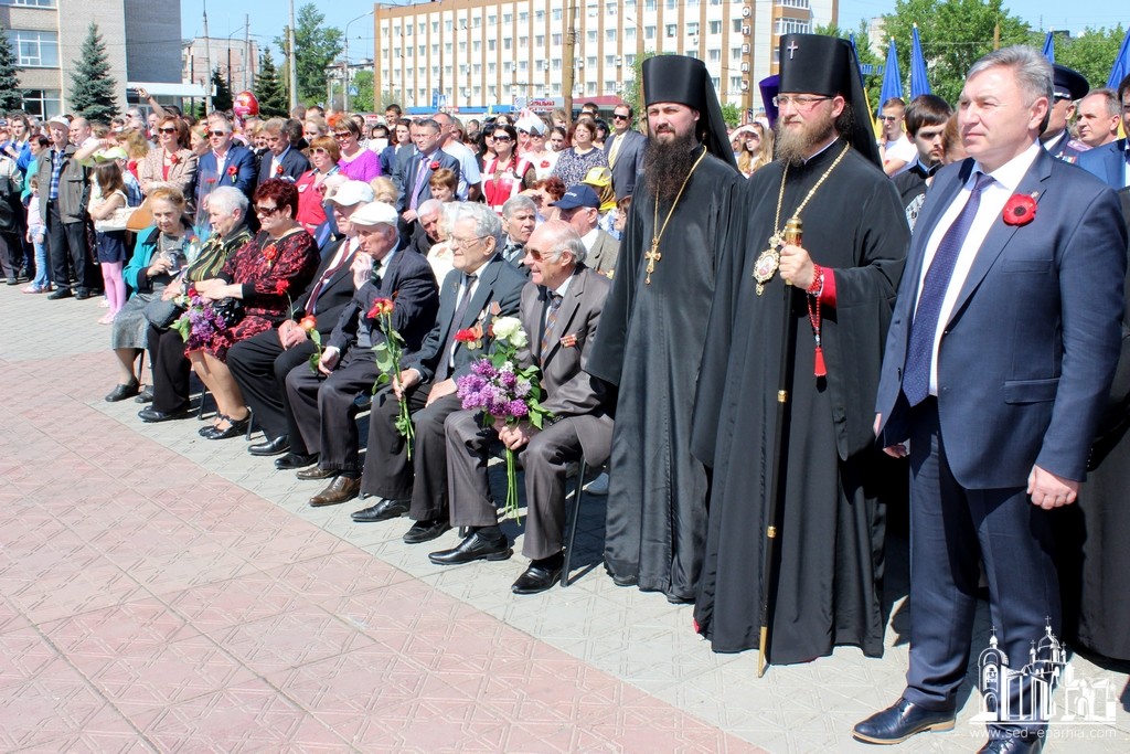 9 мая в Сквере Победы г. Первомайска прошли торжественные мероприятия, посвященные Дню Победы. После праздничного шествия ветеранов, представителей общественных организаций, жителей и гостей города по центральной площади состоялся торжественный митинг у Вечного Огня. Со словами поздравлений и наставлений ко всем обратился епископ Вознесенский и Первомайский Алексий.