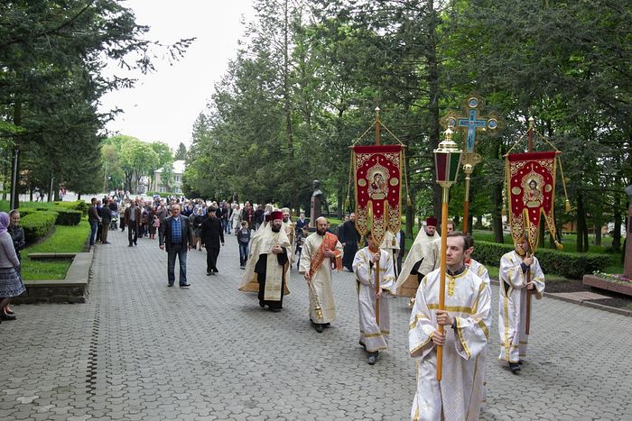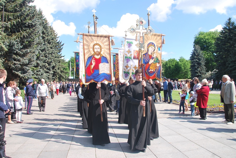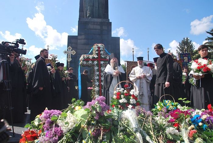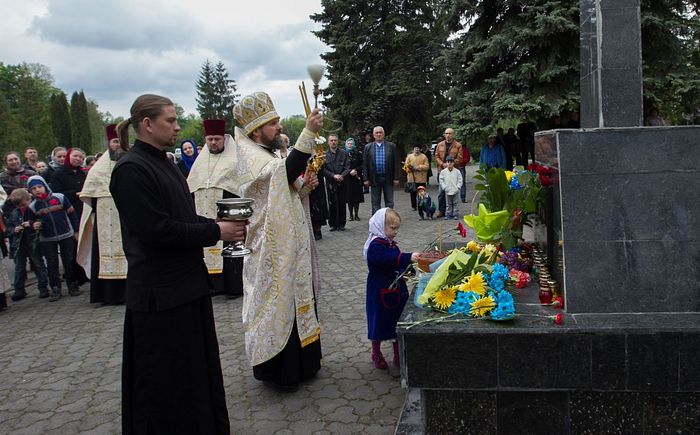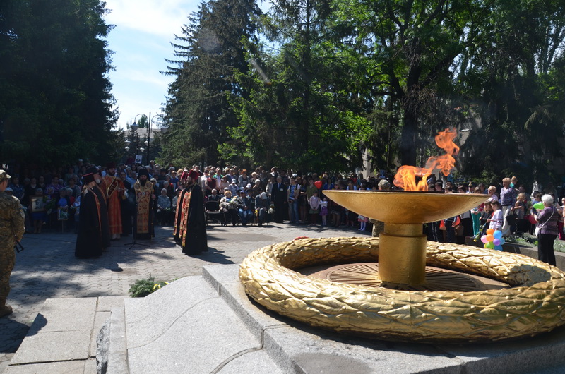 По благословению митрополита Волынского и Луцкого Нифонта панихиду у мемориального комплекса «Вечная Слава» о упокоении душ погибших на фронтах воинов, которые отдали жизнь за Победу, и жертв войны возглавил викарий Волынской епархии епископ Камень-Каширский Нафанаил. С пением ирмосов Пасхального канона священнослужители, семинаристы и верующие прошли Крестным ходом и установили у главного обелиска над Вечным огнем Крест.