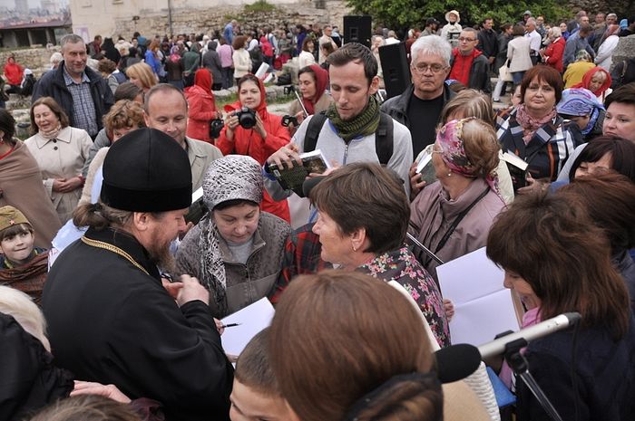 Вечером 11 мая 2016 года в Античном театре заповедника «Херсонес Таврический» состоялась встреча епископа Тихона с жителями Севастополя.
