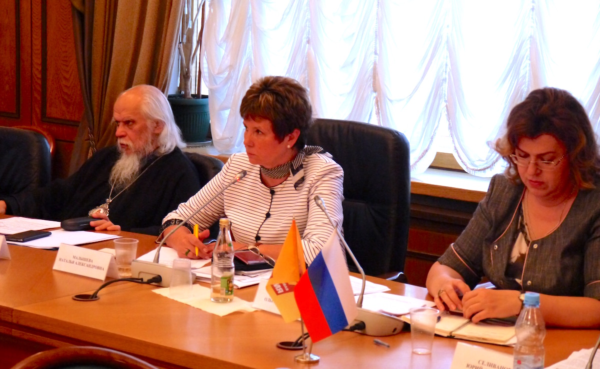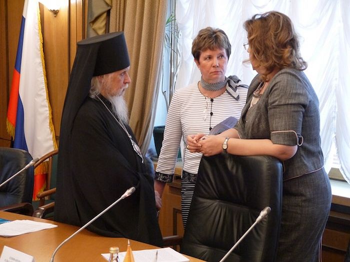 В работе круглого стола приняли участие председатель Синодального отдела по благотворительности епископ Пантелеимон и руководитель церковного центра социальной адаптации святителя Василия Великого Юлиана Никитина