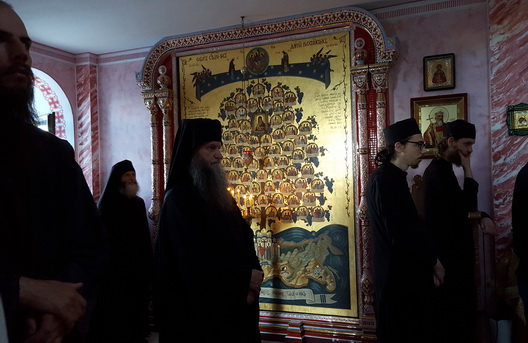 В монастыре составлена особая служба Собору святых государей и написана икона, на которой Собор святых Русских Царей и Князей изображен в виде древа, у основания которого предстоят равноапостольный князь Владимир и великая княгиня Ольга, и венчают которое царственные мученики Николай и Александра со чадами.