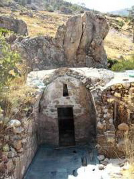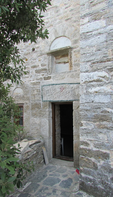 Вход в Самарийскую пещеру Антония Эсфигменского с надстроенной над ней русскими паломниками в сер. XIX в. одноименной часовней