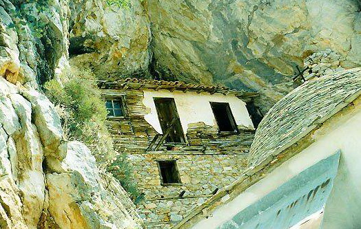 Рассмотрев подробно Эсфигменское предание о преподобном Антонии и изучив Эсфигменскую псевдо-пещеру, скажем несколько слов о святогорском пещерном подвижничестве в целом и о принципе устройства Афонских пещер.