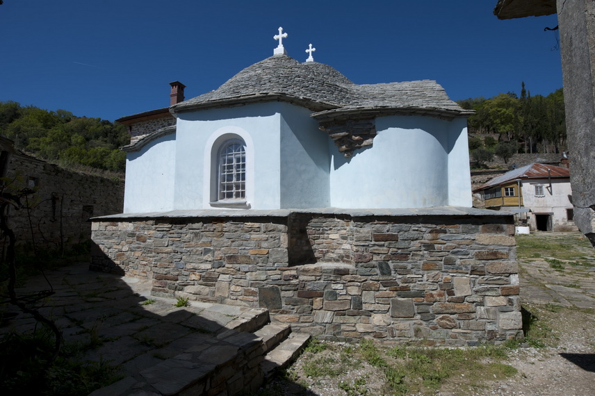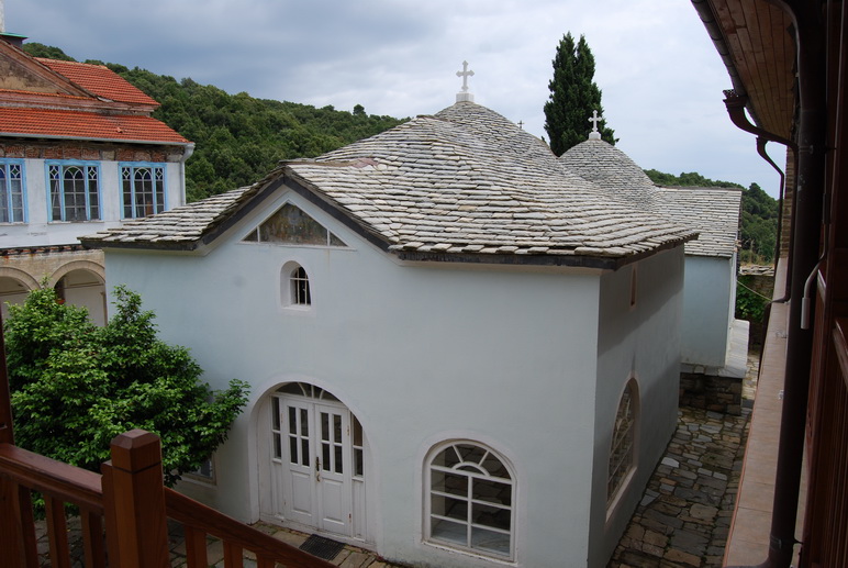 Как Собор Киево-Печерской Лавры воспроизводился с постепенным перемещением центра русской цивилизации на северо-восток во всех главнейших административных и духовных центрах Руси в виде точных или увеличенных копий (что мы видим на примере Чернигова, Ростова, Владимира, Москвы), так и Успенский Собор лавры Ксилургу русских монахов на Афоне воспроизводился в каждом новом месте их жительства. Так было при переселении в Нагорный Русик, так случилось и при переселении в Прибрежный Русский монастырь. Этот факт дает нам основание предполагать, что именно Успенский Собор первой русской обители на Афоне, посвященной Пресвятой Богородице, является первообразом Успенского Собора Киево-Печерской Лавры, а следовательно, и всех Успенских Соборов Руси[65].