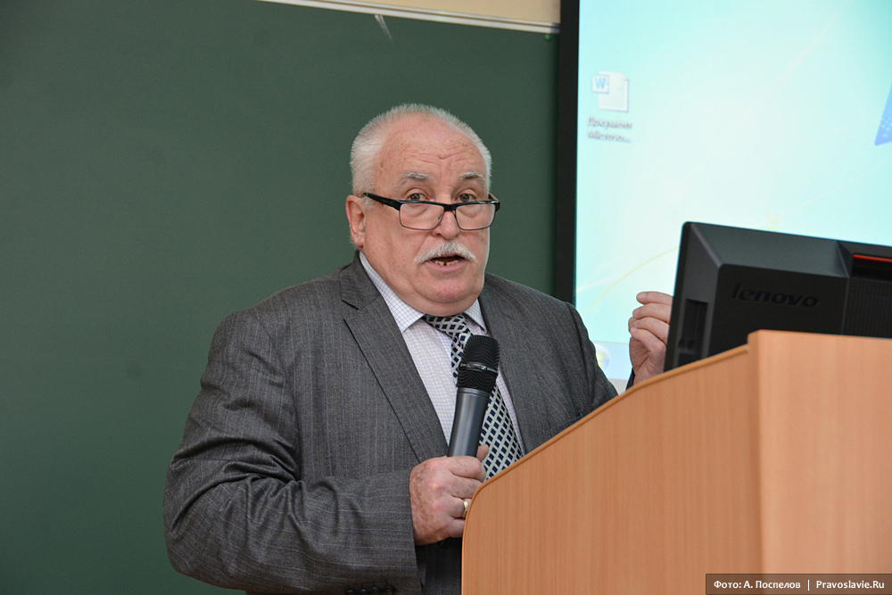 Один из наиболее интересных докладов – «Русский язык в новом языковом порядке» – был представлен Михаилом Александровичем Марусенко, доктором филологических наук, профессором Санкт-Петербургского государственного университета. Докладчик отметил, что новому мировому порядку обязательно соответствует «новый языковой порядок». Михаил Александрович опроверг известное мнение о том, что «глобальная гегемония английского языка есть естественный процесс» и что английский язык распространяется по всему миру благодаря якобы только своим достоинствам. На самом деле, по мысли докладчика, «проводится целенаправленная политика» по его продвижению. М.А. Марусенко рассказал о вышедшей в 1992 году книге английского филолога Р. Филипсона, в которой приводились сведения о состоявшейся в 1961 году секретной англо-американской конференции по экспансии английского языка. Тогда многие восприняли эту книгу как «конспирологическую версию». Однако сейчас, после истечения 50-летнего срока давности, отчеты этой конференции рассекречены и, более того, доступны в сети интернет. На этой конференции «было принято решение, что английский должен стать доминирующим языком и заменить другие языки и создаваемые ими картины мира». Модель, по которой строится смена государственного языка, известна с древности: именно так римляне заставили жителей Британии говорить на латыни. Вначале латынь популяризовали среди элит, так что со временем говорить на латыни становилось модно, следом за усвоением латыни приходила мода на римские обычаи, а затем увлечения элит воспринимались другими слоями общества. Особенно опасно, по мнению докладчика, подобная модель работает в сфере образования, когда «маленькие дети, благодаря раннему обучению английскому языку, отказываются от родной культуры, кажущейся им неполноценной». Далее профессор кратко обрисовал современную лингвистическую «гравитационную модель», пытающуюся описать 7 тысяч языков, на которых говорит современный мир. М.А. Марусенко отметил, что выдвижение английского языка на роль единственного общемирового нарушает сложившуюся картину и приводит к умалению роли «больших языков» (напр., французского, немецкого, испанского, русского), которые становятся не такими нужными, как раньше. В качестве примера он привел басков, отказывающихся учить испанский, поскольку, как они говорят, со всей Европой они могут общаться и на английском.