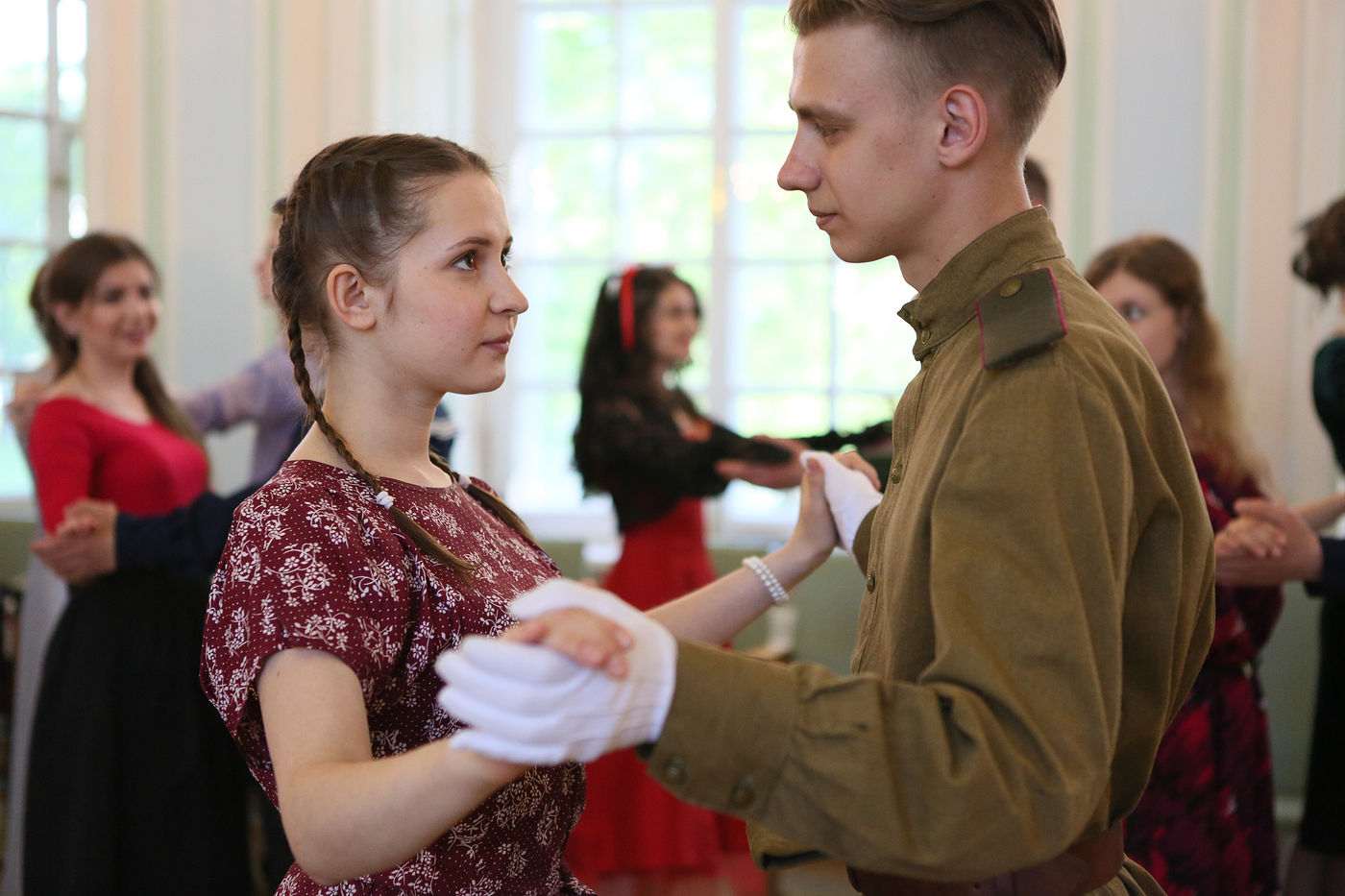 Основная танцевальная часть Покровского бала Победы прошла под руководством танцмейстера Виталия Исакова в сопровождении Военного духового оркестра Морского корпуса Петра Великого