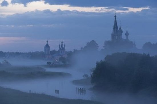 Однофамилец Андрея — менеджер IT-проектов Сергей Ершов — пару лет назад для широкой аудитории открыл другой вид — панораму двух монастырских ансамблей в излучине реки Тезы в селе Дунилове, что в Шуйском районе (Илл.2). «После этого сюда начались настоящие фотопаломничества, — рассказывает Сергей. — Чем хорош этот вид? Это настоящий русский пейзаж: широкий изгиб неспешной реки, просыпающееся в тумане солнце и храмы (числом больше десяти, если считать церкви слившейся с Дуниловым соседней деревни Горицы). Половина их, к сожалению, разрушена... В этом кадре у меня уместились две обители: действующий женский Успенский Дуниловский монастырь и недействующий старинный Благовещенский».