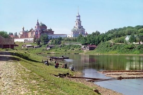 Илл.6. Торжок, вид на Борисоглебский монастырь с левого берега Тверцы. Фото Сергея Прокудина-Горского, 1910г.