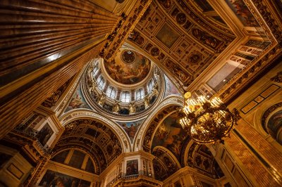 Живу и работаю в самом красивом городе мира — Санкт-Петербурге, занимаюсь управлением персоналом. Убранство Исаакиевского собора удалось качественно снять с третьей попытки. Здесь в условиях естественного дневного освещения запечатлен центральный купол, неизменно поражающий меня потрясающей росписью (Илл.8). Фасады собора я сняла на закате в марте.