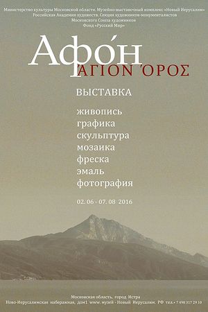 В рамках выставочного проекта «Афон» в музее «Новый Иерусалим» зрители смогут познакомиться с работами членов Российской академии художеств, выполненных в самых разнообразных техниках. Посетители выставки увидят графические листы в смешанной технике В.Г. Калинина, пастели В.А. Бубнова, эмали З.К. Церетели, фрески Е.Н. Максимова, акварели В.А. Кулакова, живописные работы Н.В. Медведева и В.Н. Разгулина… В экспозиции также представлены скульптурные композиции Г.И. Красношлыкова и С.А. Антонова.