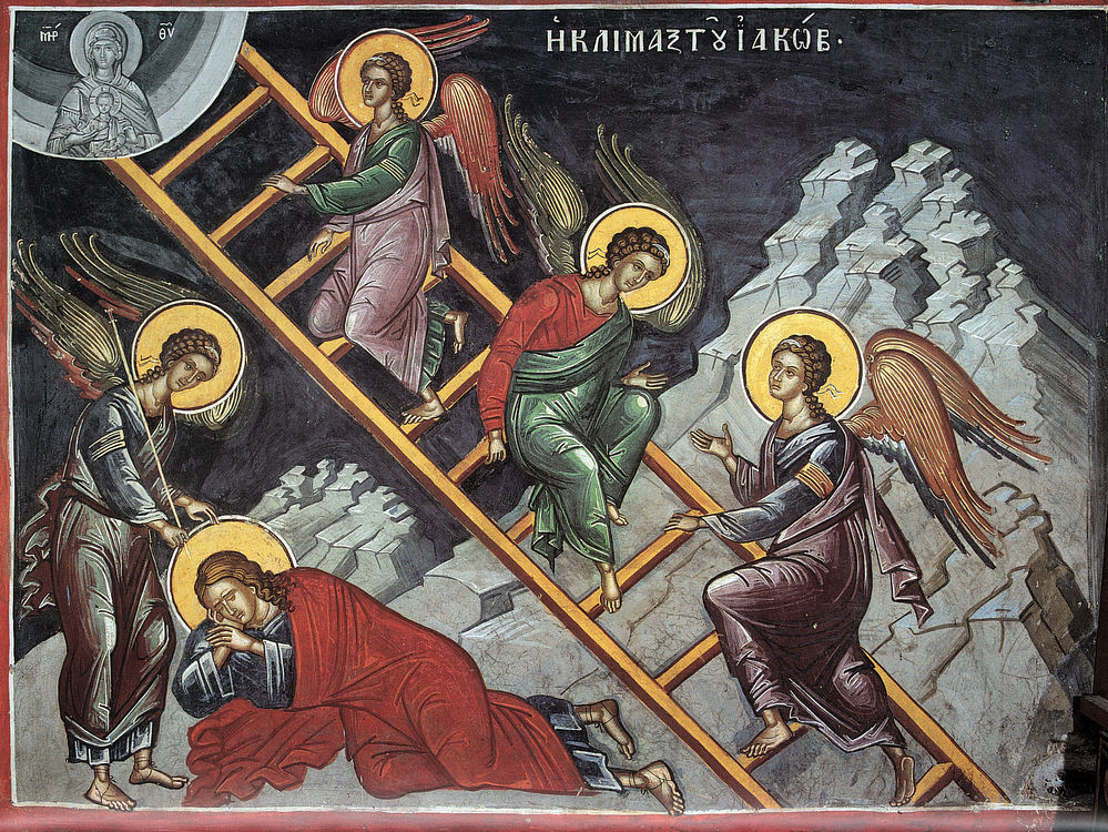 Православное учение о Царствии Небесном и вхождении в него или низвержении по пути к нему человеческих душ может строиться, опираясь на библейское повествование о «лестнице Иакова», – с аргументированным истолкованием данного видения блаженным Иеронимом Стридонским. О видении читаем: «Иаков же вышел из Вирсавии и пошел в Харран, и пришел на одно место, и остался там ночевать, потому что зашло солнце. И взял один из камней того места, и положил себе изголовьем, и лег на том месте. И увидел во сне: вот, лестница стоит на земле, а верх ее касается неба; и вот, Ангелы Божии восходят и нисходят по ней. И вот, Господь стоит на ней и говорит: Я Господь, Бог Авраама, отца твоего, и Бог Исаака; [не бойся]» (Быт. 28, 10–13).