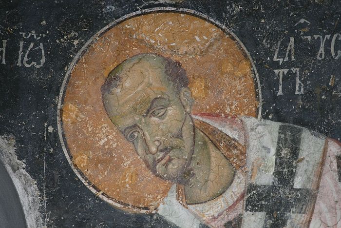 «Прозорливыми очами он видел и души человеческие по исшествии их из тела. Однажды, стоя в церкви святой Анастасии на молитве, он поднял глаза к небу и увидел отверстые небеса и много Ангелов, из которых одни сходили вниз на землю, другие шли вверх[19], неся на небо человеческие души. И вот, видит он, идут два Ангела вверх, неся какую-то душу. И когда приблизились они к блудному мытарству, вышли мытари-бесы и сказали с гневом: