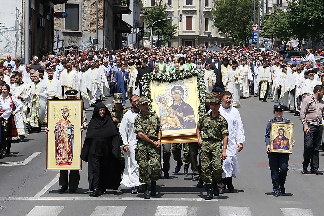 На праздник Вознесения Господня улицами сербской столицы прошел величественный Крестный ход. После Божественной литургии в храме Вознесения Господня Святейший Патриарх Ириней возглавил молитвенное шествие, в котором приняли участие несколько тысяч человек.