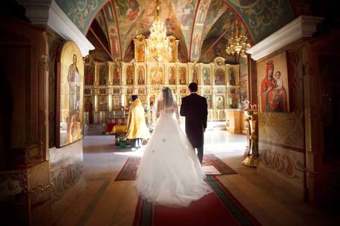 То чинопоследование венчания, которое сейчас совершается в Церкви в положенные дни, складывалось веками – оно сформировалось где-то к XIV веку. Как венчали в первые века, нам сказать сложно. Но известно одно: епископ вот эту молодую пару, которая расписалась законно, поставлял в церкви, читал определенную молитву, благословлял ее, и они вместе причащались на Божественной Литургии. Отголосок этого совместного Причастия на Божественной Литургии – та общая чаша, которую пьют супруги во время венчания.