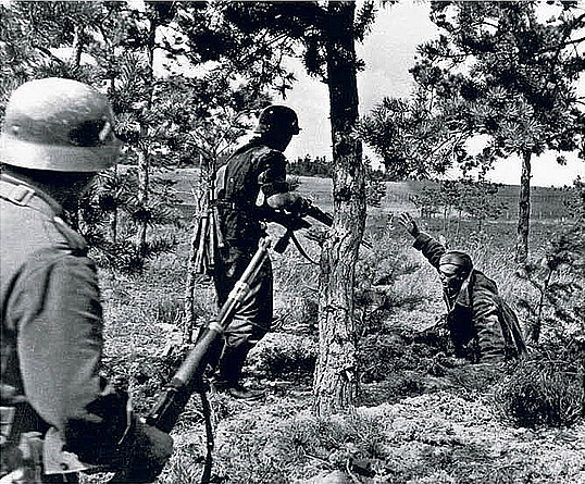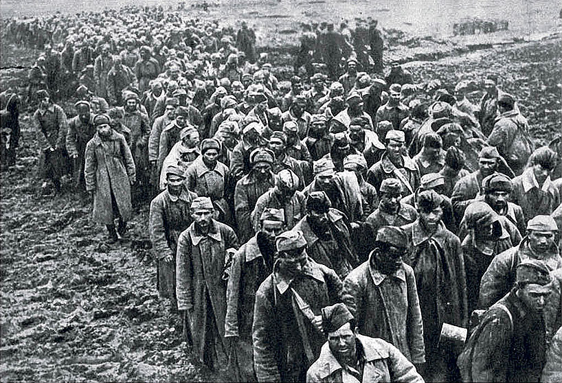 Немецкое отступление в декабре 1941-го было тяжелым. Солдаты и офицеры вражеской армии, в шубах с чужого плеча, в обрезанных валенках поверх сапог, обмотанные для тепла тряпками, вымещали злобу на пленных, убивая их десятками и сотнями. Путь отступающей немецкой армии был усеян мертвыми телами. Пленные русские шли из последних сил – босиком (отмороженные пальцы потом отваливались, а ноги пожирала гангрена), в обмотках, в разваливающейся обуви.