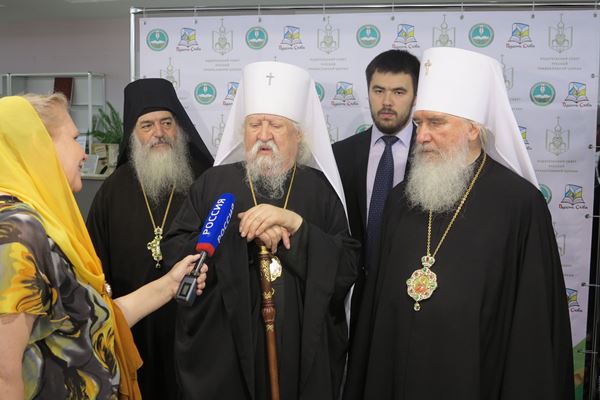 Перед торжественной церемонией открытия гости и участники выставки собрались в конференц-зале библиотеки на общий молебен. По окончании соборной молитвы к собравшимся обратились митрополит Варнава и митрополит Климент. Владыка Варнава поприветствовал устроителей, участников и гостей выставки, поздравил с открытием мероприятия в эти значимые для республики дни и поблагодарил владыку Климента и всех организаторов за труды на ниве духовно-нравственного просвещения народа Чувашии.