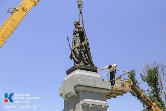 В столице Крыма полным ходом идёт установка прибывшего в середине июня памятника императрице Екатерине II и ее соратникам. После того, как монумент отлили на скульптурно-производственном комбинате «Лит Арт» в подмосковном Жуковском, 10 июня он был отправлен в столицу Крыма, сообщает Крымское информационное агенство.