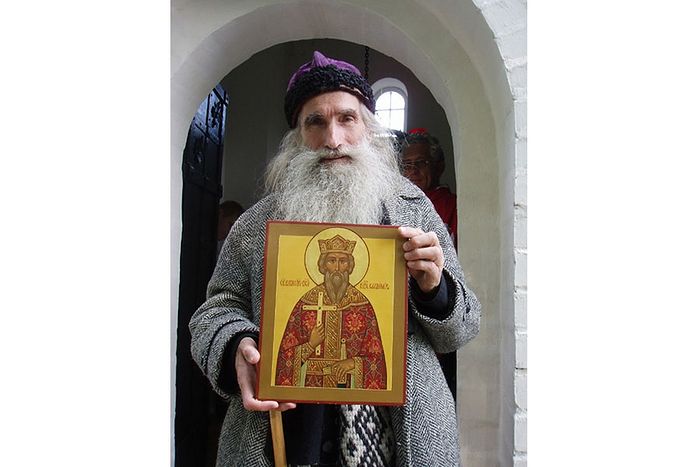– Батюшка не любил фотографироваться. Первую фотографию с ним мы сделали в 1995 г., когда приехали на остров с певцом Яном Осиным, теперь заслуженным артистом России, а тогда чтецом нашего храма и моим помощником. Я готовил к изданию книги цикла «Описание чтимых икон и жития святых Псковской епархии или имевших отношение к Псковскому краю». В храме на Талабске есть чудотворная икона Божией Матери «Смоленская», известная как «Благодатное Небо». Эта икона находится в храме с момента его освящения в середине XIX в. На ней прежде была серебряная риза с позолотой, которую сняли с образа в годы богоборчества.