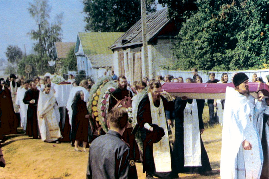 гроб с телом батюшки. Я приехал на Талабск утром.