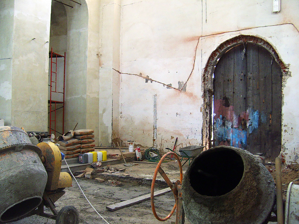Но после этого помощь пошла: по саморезу, по гвоздику. Отделили полуразрушенный главный придел от того, где сейчас молимся, потому что зимой невозможно обогреть весь храм.