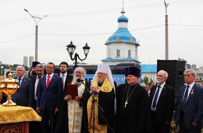 По окончании чина освящения, Владыка, обращаясь к собравшимся отметил, что житие святых Петра и Февронии является для горожан образцом семейных ценностей, верных и целомудренных отношений, любви и преданности в браке, рождения и воспитания детей в любви к Родине.