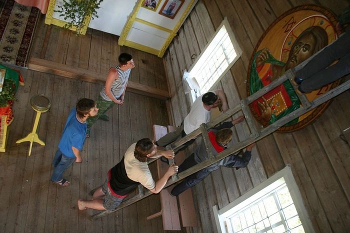 Потрудиться в Пинежское благочиние Архангельской епархии приехали семинаристы Сретенской семинарии, студенты московских вузов и иные добровольцы. Ребята восстанавливают старинные Никольский и Троицкий храмы села Кевролы, а также древнюю колокольню на погосте деревни Едомы.