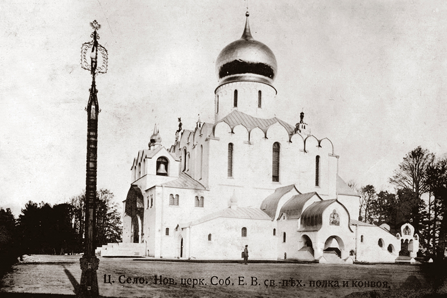 Император Николай II, Императрица Александра Феодоровна, архитектор В.А.Покровский на строительстве Феодоровского собора