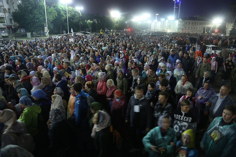 По окончании Литургии, около четырех часов утра, верующие начали молитвенное шествие, которое возглавил митрополит Кирилл.