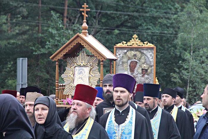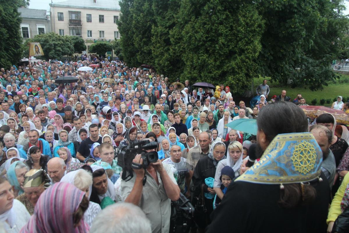 По улицам Житомира Крестный ход с чудотворными иконами Богоматери «Почаевская» и «Межиричская» прошел к Спасо-Преображенскому кафедральному собору. С молитвой и песнопениями крестоходцы преодолели около 10 километров.