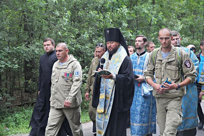 Безопасность участников крестного хода обеспечивают полицейские и военные, сопровождающие колонну.