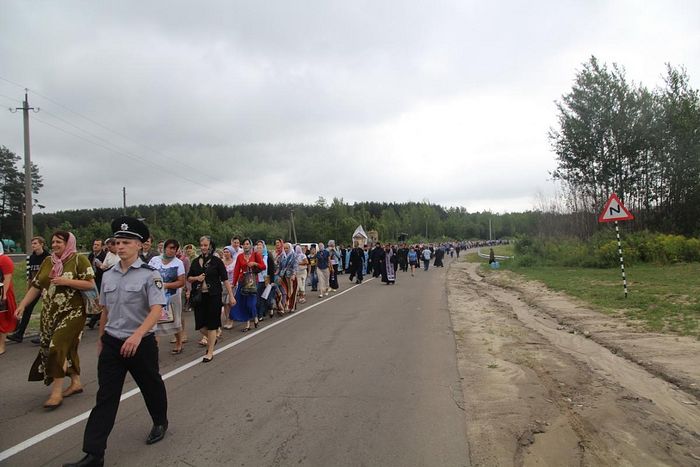 Крестный ход прибыл к городу утром 18 июля, на окраине паломников от Почаевской лавры встретили прихожане и священники во главе с архиепископом Житомирским и Новоград-Волынским Никодимом. Владыка возглавил молебен с чтением Евангелия, пожелал всем участникам духовного воодушевления, крепости и сил в прохождении пути молитвенного подвига.