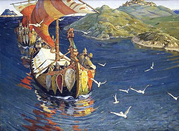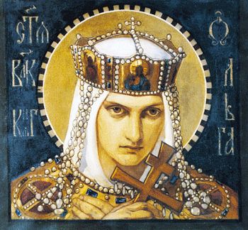 Света Равноапостолна Олга Још се Русија крсти у дане велике кнегиње Олге, жене великог кнеза руског Игора Руриковича, мајке Свјатославове, а бабе Владимирове. Она, као што пише у њеном житију, отишавши у Цариград, прими свету хришћанску веру и доби на светом крштењу име Јелена. По повратку отуда, она у Кијеву и осталим руским градовима многе приведе к вери и светом крштењу, али не могаде све просветити, јер и сина свог Свјатослава не могаше никако усаветовати да прими хришћанство.