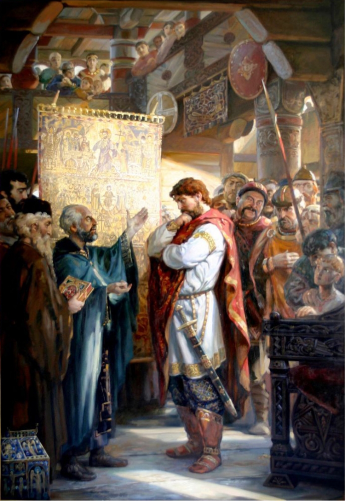 И рекоше му бојари и старешине: Нико никада не куди ништа своје, него хвали. Ти пак, велики кнеже, имаш мноштво мудрих људи, па ако хоћеш да тачније познаш истину, пошљи најбоље између њих у разне земље и народе, да виде и испитају сваку веру и како ко служи Богу своме, и када се врате, они ће и теби и нама као очевици испричати све подробно и тачно.