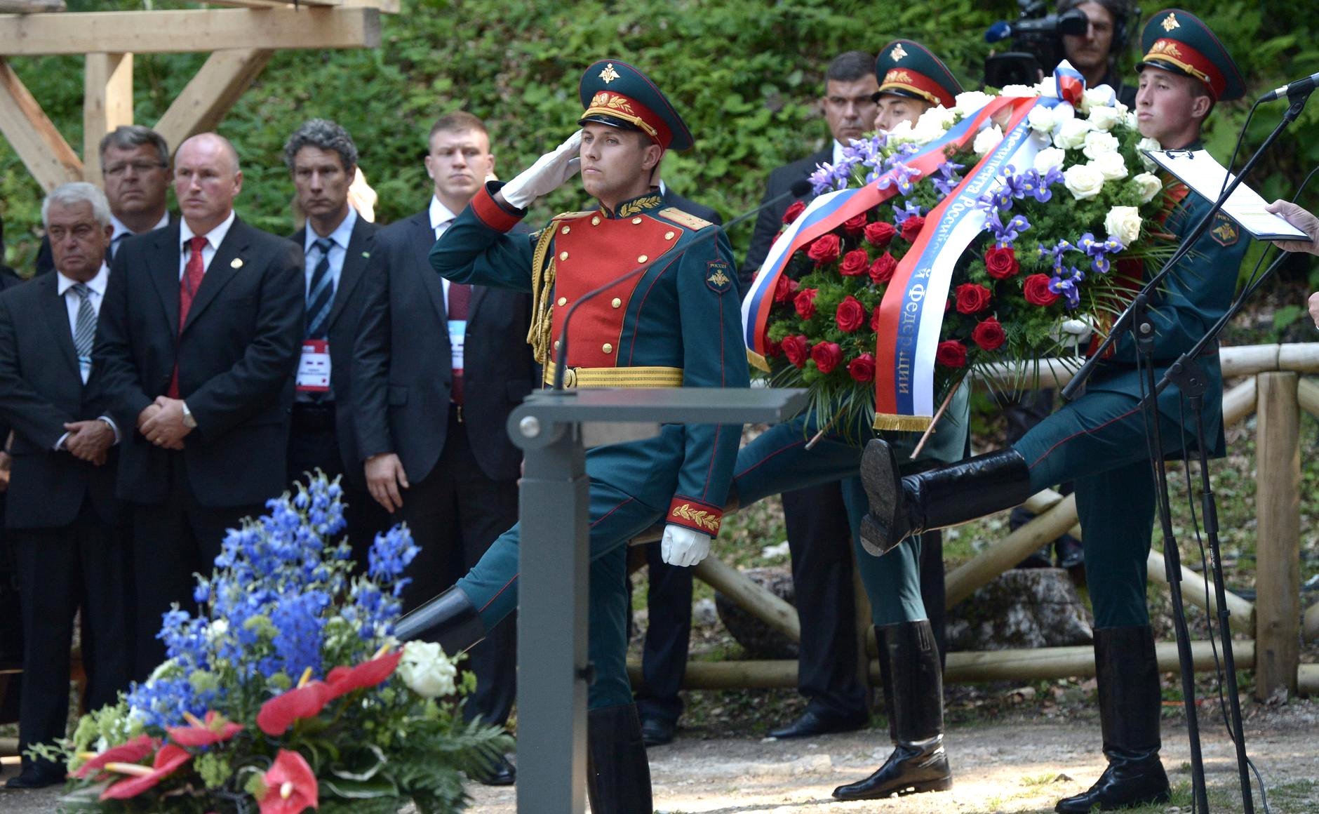 В ходе мемориальной церемонии Владимир Путин и Борут Пахор, а также председатель Общества дружбы «Россия – Словения» Саша Иван Гержина возложили к обелиску венки.